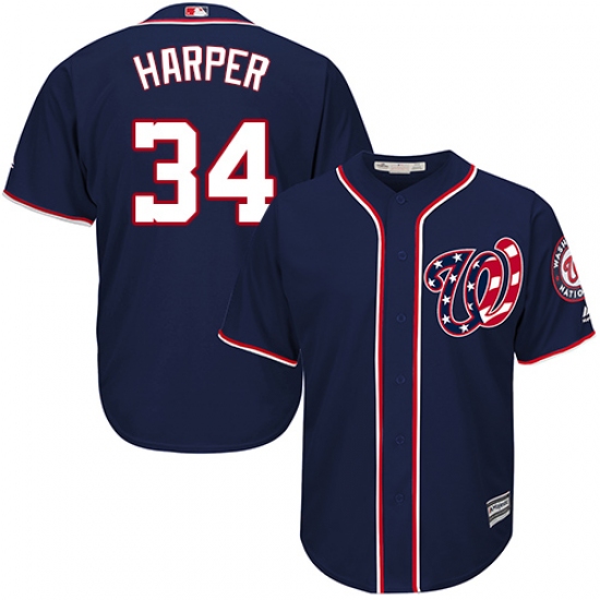 Home>MLB>Washington Nationals>Bryce Harper>Youth Majestic Washington Nationals #34 Bryce Harper Replica Navy Blue Alternate 2 Cool Base MLB Jersey