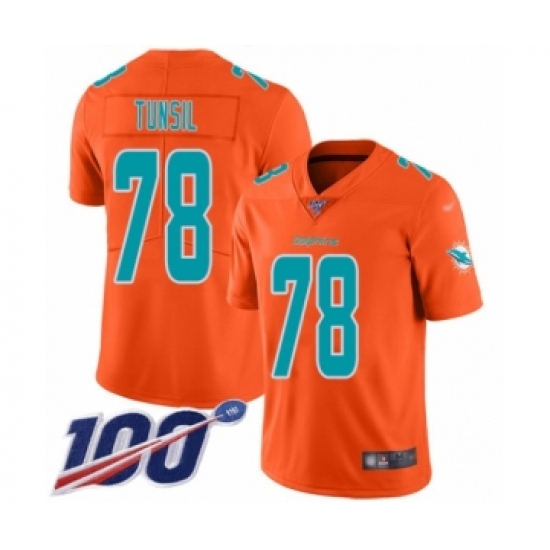 >Youth Miami Dolphins #78 Laremy Tunsil Limited Orange Inverted Legend 100th Season Football Jersey