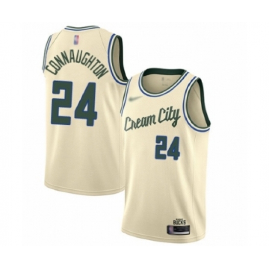>Youth Milwaukee Bucks #24 Pat Connaughton Swingman Cream Basketball Jersey - 2019 20 City Edition