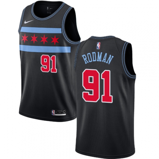 Youth Nike Chicago Bulls #91 Dennis Rodman Swingman Black NBA Jersey - City Edition