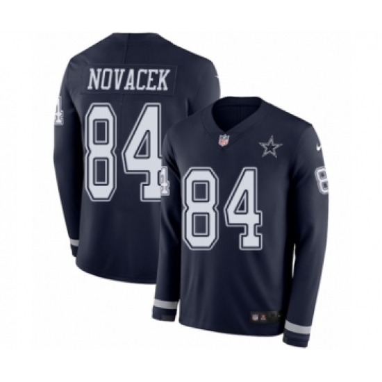 >Youth Nike Dallas Cowboys #84 Jay Novacek Limited Navy Blue Therma Long Sleeve NFL Jersey