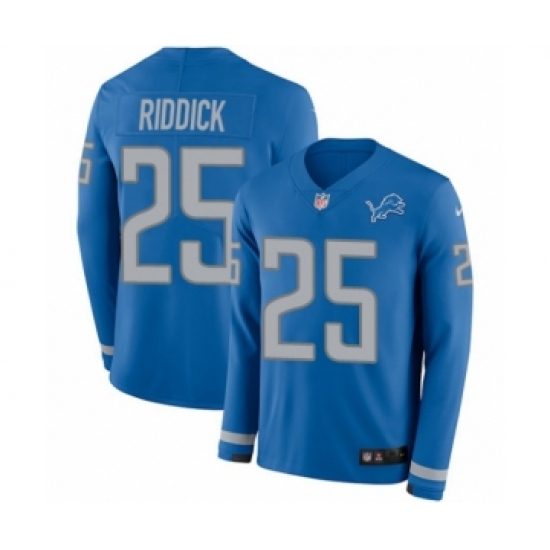 >Youth Nike Detroit Lions #25 Theo Riddick Limited Blue Therma Long Sleeve NFL Jersey