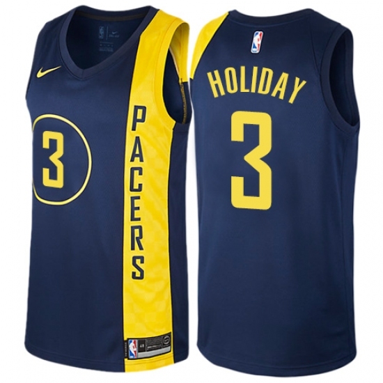 >Youth Nike Indiana Pacers #3 Aaron Holiday Swingman Navy Blue NBA Jersey - City Edition