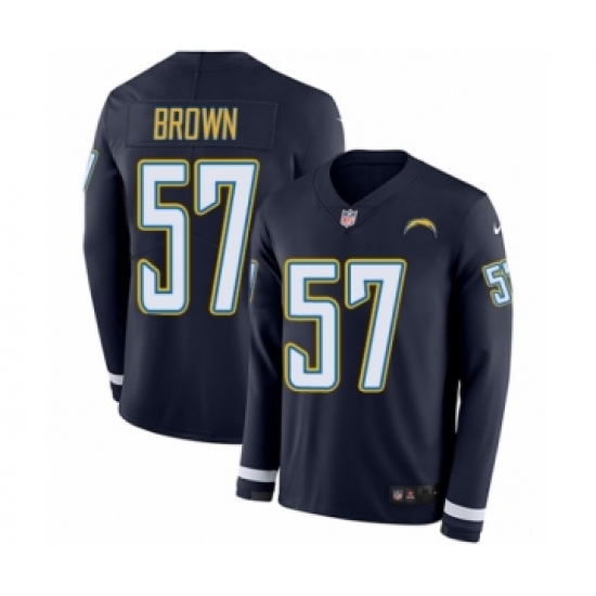 >Youth Nike Los Angeles Chargers #57 Jatavis Brown Limited Navy Blue Therma Long Sleeve NFL Jersey
