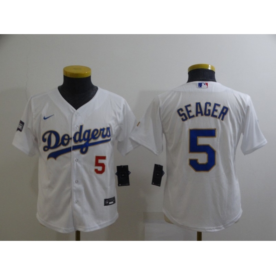 Youth Nike Los Angeles Dodgers #5 Corey Seager White Series Champions Jersey