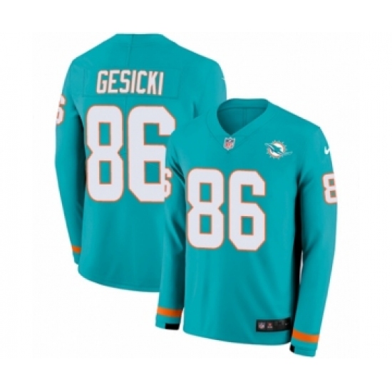 >Youth Nike Miami Dolphins #86 Mike Gesicki Limited Aqua Therma Long Sleeve NFL Jersey