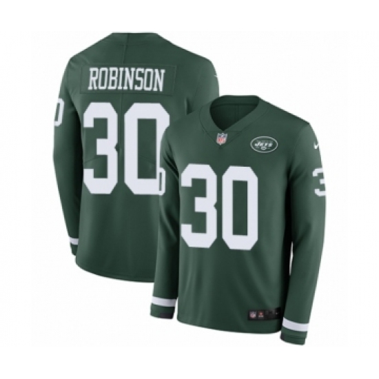 >Youth Nike New York Jets #30 Rashard Robinson Limited Green Therma Long Sleeve NFL Jersey