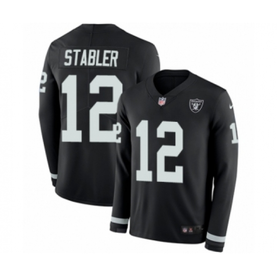 >Youth Nike Oakland Raiders #12 Kenny Stabler Limited Black Therma Long Sleeve NFL Jersey