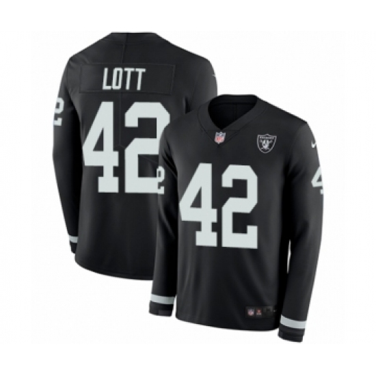 >Youth Nike Oakland Raiders #42 Ronnie Lott Limited Black Therma Long Sleeve NFL Jersey