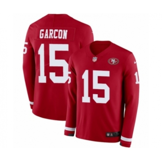 >Youth Nike San Francisco 49ers #15 Pierre Garcon Limited Red Therma Long Sleeve NFL Jersey