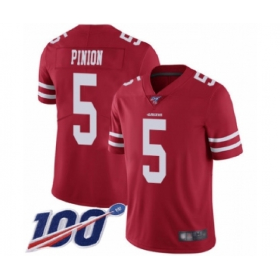 Youth San Francisco 49ers #5 Bradley Pinion Red Team Color Vapor Untouchable Limited Player 100th Season Football Jersey