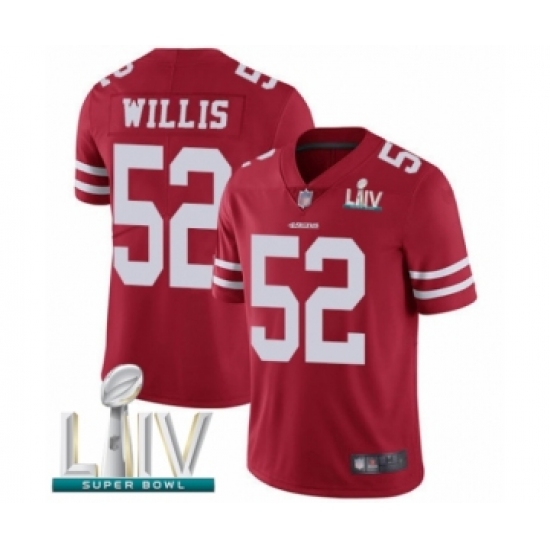 >Youth San Francisco 49ers #52 Patrick Willis Red Team Color Vapor Untouchable Limited Player Super Bowl LIV Bound Football Jersey