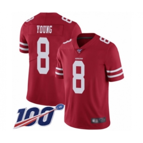 >Youth San Francisco 49ers #8 Steve Young Red Team Color Vapor Untouchable Limited Player 100th Season Football Jersey
