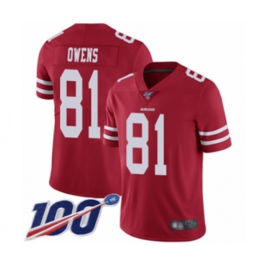 Youth San Francisco 49ers #81 Terrell Owens Red Team Color Vapor Untouchable Limited Player 100th Season Football Jersey
