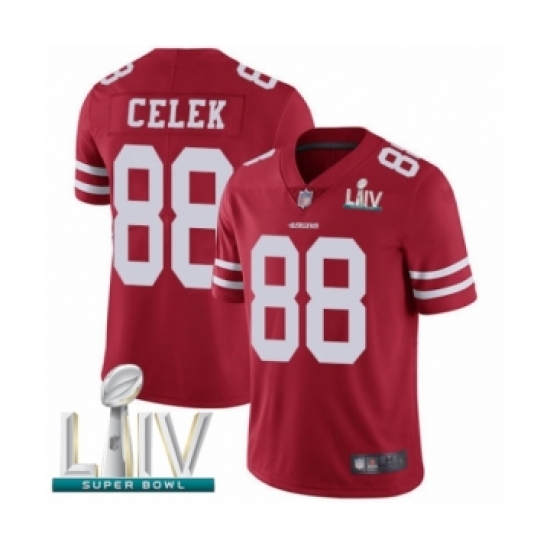 >Youth San Francisco 49ers #88 Garrett Celek Red Team Color Vapor Untouchable Limited Player Super Bowl LIV Bound Football Jersey