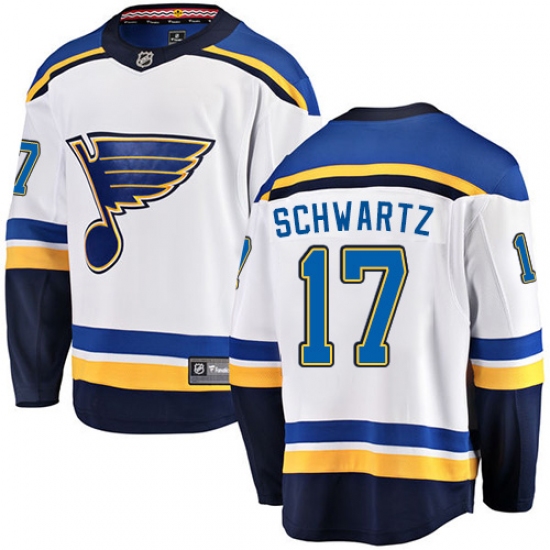 Home>NHL>St. Louis Blues>Jaden Schwartz>Youth St. Louis Blues #17 Jaden Schwartz Fanatics Branded White Away Breakaway NHL Jersey