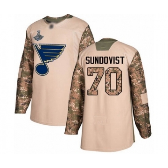 >Youth St. Louis Blues #70 Oskar Sundqvist Authentic Camo Veterans Day Practice 2019 Stanley Cup Champions Hockey Jersey
