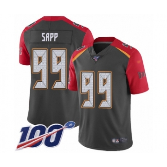 >Youth Tampa Bay Buccaneers #99 Warren Sapp Limited Gray Inverted Legend 100th Season Football Jersey