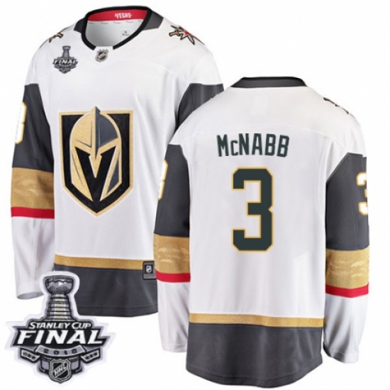Youth Vegas Golden Knights #3 Brayden McNabb Authentic White Away Fanatics Branded Breakaway 2018 Stanley Cup Final NHL Jersey