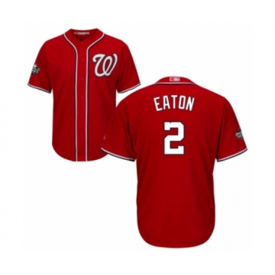 >Youth Washington Nationals #2 Adam Eaton Authentic Red Alternate 1 Cool Base 2019 World Series Bound Baseball Jersey