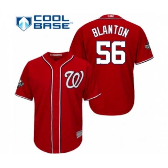 Youth Washington Nationals #56 Joe Blanton Authentic Red Alternate 1 Cool Base 2019 World Series Bound Baseball Jersey